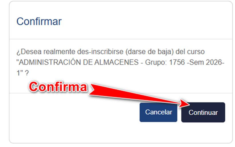 Nota: Sólo se deben eliminar las asignaturas que ya no aparecen en el comprobante de inscripción actualizado. Ahora bien, eliminarlas de plataforma NO significa moverlas o eliminarlas del Sistema de Administración Escolar, este es solo un procedimiento de carácter técnico en plataforma y no administrativo.